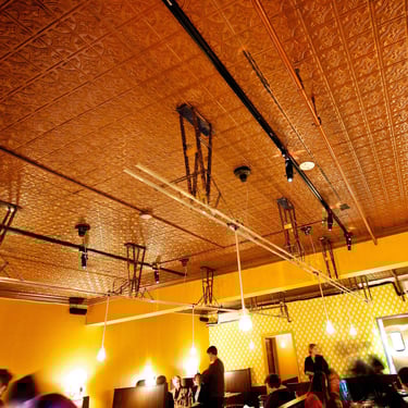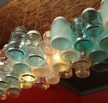 For the back bar, Majestic Lounge, I created simple star fixtures mounted on old pot lids for the main room, and worked with the design team to illuminate a few hundred vintage Ball jars over the new bar.