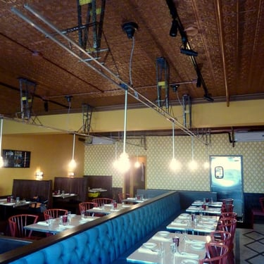 The Evening Star Cafe in Alexandria, VA was one of the first restaurants I worked on with Neighborhood Restaurant Group almost 15 years ago, so I was thrilled when the owners asked me to update the Erector Set interior lighting and to also create the art installation for the main dining room.