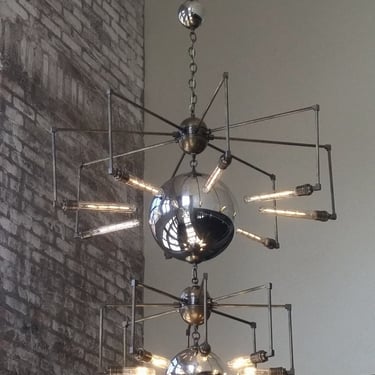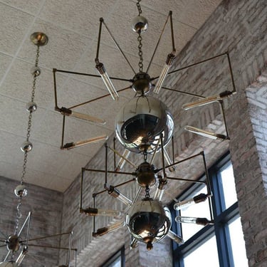 Working with the restaurant owners, I wanted to create some clean elegant hanging fixtures that would command the space created by the high ceilings and still complement the exposed brick dining area. As there is significant foot traffic on the street, the lighting also needed to be a point of interest to draw diners in.